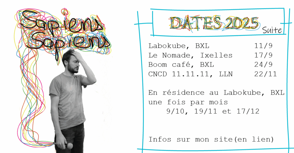 Sapiens Sapiens est un spectacle de stand up sur nous et notre société dite “moderne”.